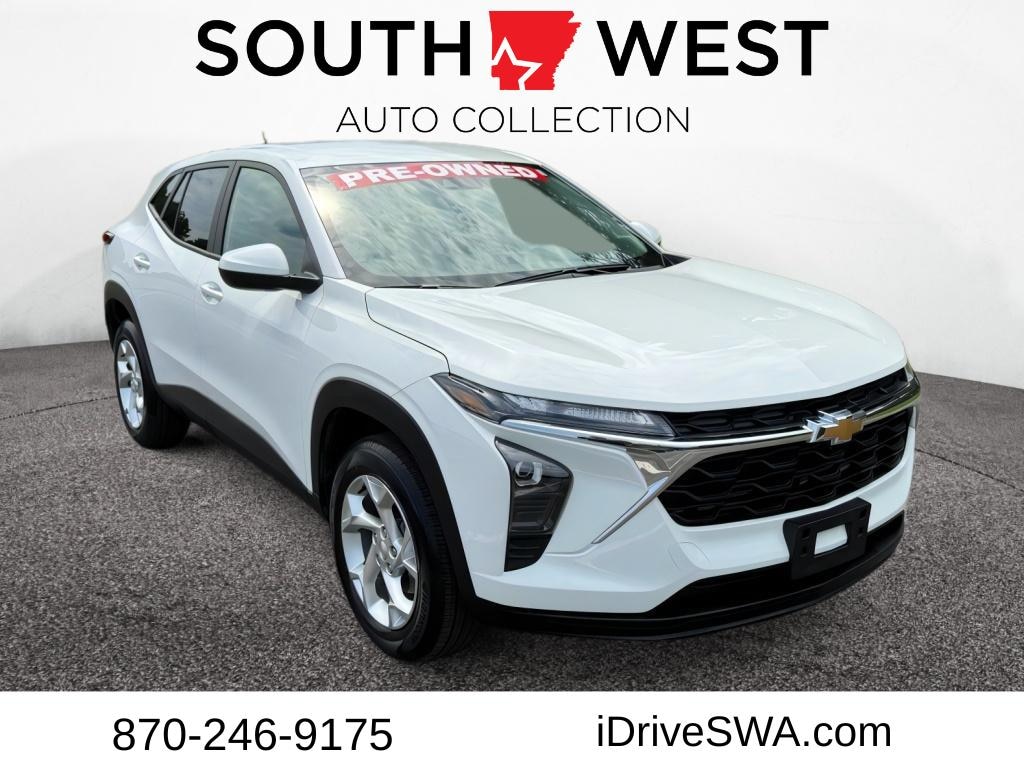Introducing the 2025 Chevrolet Trax LS, a nearly-new compact SUV that combines efficiency with modern technology, now available with just 2,199 miles. This well-maintained vehicle features a CARFAX Clean Report and is a CARFAX 1-Owner car, ensuring peace of mind with its superior ownership history. Under the hood, the Chevrolet Trax LS is powered by a 1.2L 3-cylinder engine, paired with a front-wheel-drive system. This combination delivers an agile and efficient driving experience, perfect for urban commuting or weekend getaways. The interior is equipped with cutting-edge technology to enhance your driving experience. Stay connected with Hands-Free Bluetooth, allowing you to make calls and stream music effortlessly. Safety is a priority with features like Lane Keep Assist, designed to provide gentle steering inputs to help keep you centered in your lane. Additionally, the Back-Up Camera offers enhanced visibility when reversing, making parking and maneuvering in tight spaces a breeze. The 2025 Chevrolet Trax LS blends practicality with style, making it an excellent choice for drivers seeking a reliable, modern vehicle. Visit us today to explore this exceptional compact SUV and experience its impressive features firsthand.
