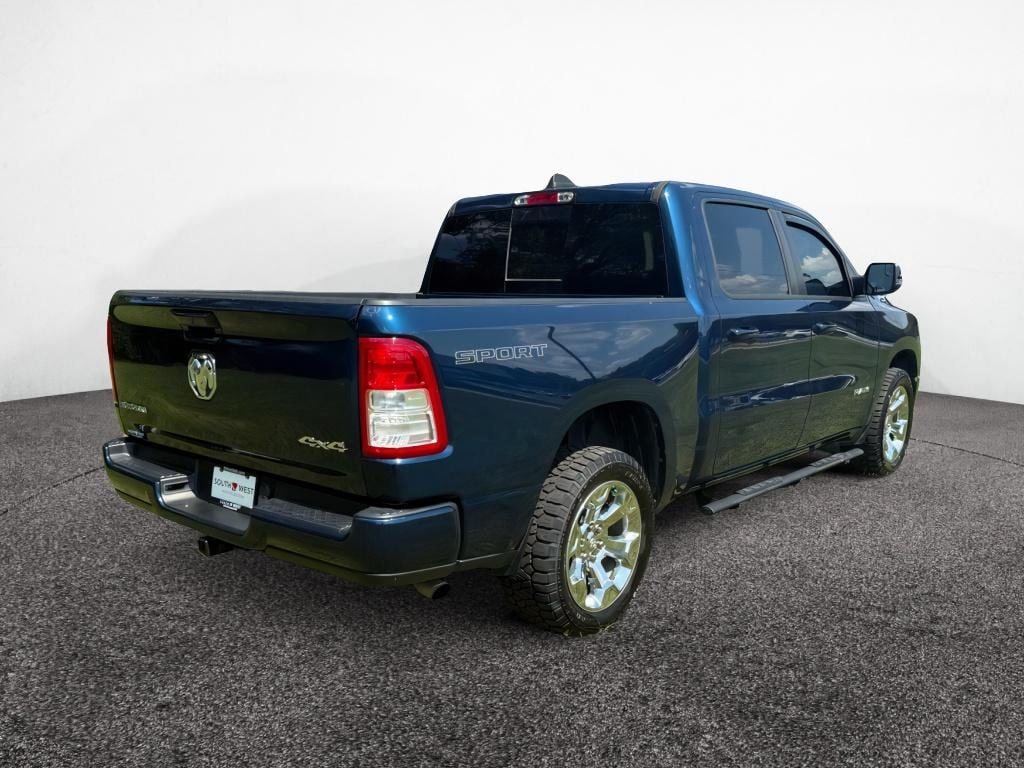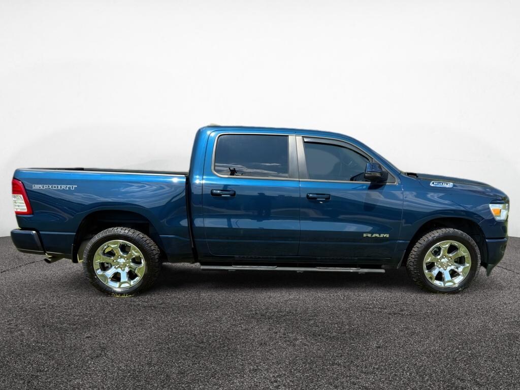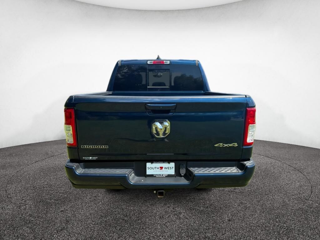 Quick Order Package 23Z Big Horn: Big Horn Badge. Big Horn Level 1 Equipment Group: Google Android Auto; Bluetooth Handsfree Phone and Audio; USB Host Flip; Rear Window Defroster; Integrated Center Stack Radio; Rear View Auto Dim Mirror; For Details. Visit DriveUconnect.com; For More Info. Call 800-643-2112; Rear Power Sliding Window; Rear Dome with On/off Switch Lamp; Front Fog Lamps; Connectivity - US/Canada; Glove Box Lamp; 4G LTE Wi-Fi Hot Spot; GPS Antenna Input; Exterior Mirrors with Heating Element; Auto Dim Exterior Driver Mirror; Heated Front Seats; Heated Steering Wheel; 8.4 Touchscreen Display; Black Exterior Mirrors; Class IV Receiver Hitch; Black Premium Power Mirrors; Apple CarPlay; Big Horn Instrument Panel Badge; SiriusXM Satellite Radio; Exterior Mirrors with Supplemental Signals; Exterior Mirrors Courtesy Lamps; Passenger Sun Visor with Illuminated Mirror; Electric Shift on Demand Transfer Case; Power-Folding Mirrors; 2nd Row in Floor Storage Bins; Convex Wide-Angle Exterior Mirror Insert. Sport Appearance Package: 275/55R20 OWL All Season Tires; Deluxe Cloth Bucket Seats; Exterior Mirrors with Supplemental Signals; Body Color Premium Power Mirrors; Sport Decal; Body Color Door Handles; Exterior Mirrors Courtesy Lamps; RAM Grille Badge - Chrome; Exterior Mirrors with Heating Element; Auto Dim Exterior Driver Mirror; Body Color Exterior Mirrors; Grille Surround 1 Body Color Texture 2 Black; Black Interior Accents; Power-Folding Mirrors; Body Color Front Bumper; Convex Wide-Angle Exterior Mirror Insert; Body Color Rear Bumper with Step Pads. 20 X 9 Aluminum Chrome Clad Wheels. Uconnect 5 Navigation Radio with 8.4 Display. Deluxe Cloth Bucket Seats. 33 Gallon Fuel Tank. Remote Start System. Patriot Blue Pearlcoat. Patriot Blue Pearlcoat. MOPAR Front and Rear Rubber Floor Mats. **Equipment listed is based on original vehicle build and subject to change. Please confirm the accuracy of the included equipment by calling the dealer prior to purchase.**